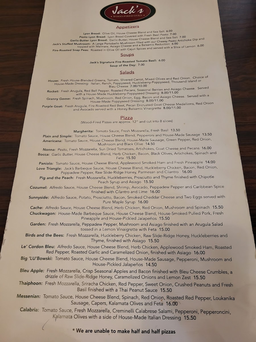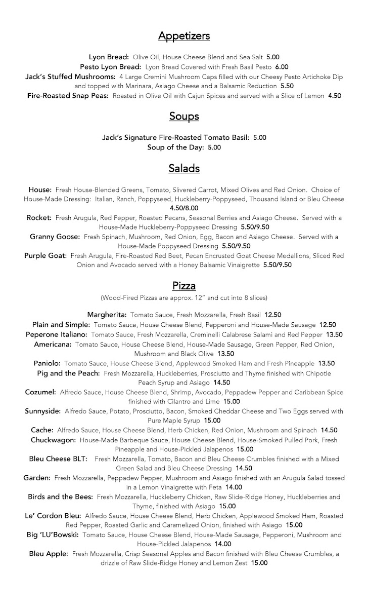 At Jack's, the menu is packed with mouthwatering options, ensuring there's something for everyone. Their renowned pizzas include: