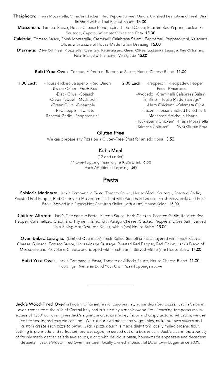 Welcome to Jack's Wood-Fired Oven, a gem nestled in the heart of Logan, Utah. Located at 256 Main St, this vibrant eatery has quickly earned a reputation for its delightful wood-fired pizzas and inviting atmosphere. With a phone number of +1 435-754-7523, this spot is ready to cater to your culinary cravings!